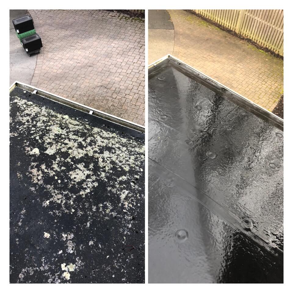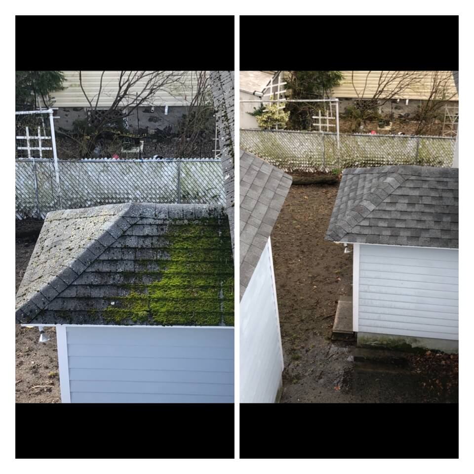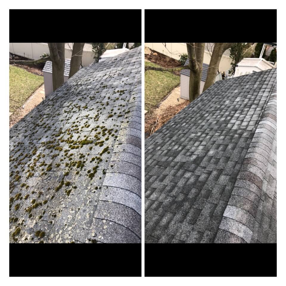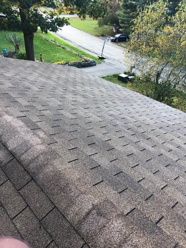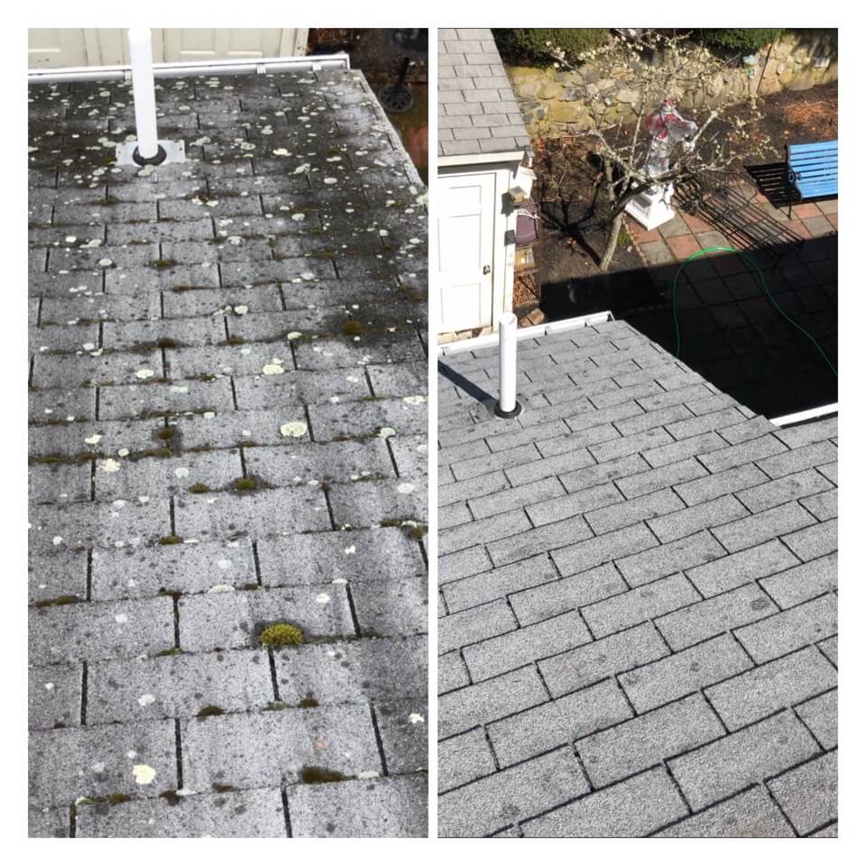 HiCleaners is the most experienced company in Brookline, NH that deals with roof washing and roof soft washing. All of our employees are trained to recognize precise solution mixing ratios to provide you with the safest and most effective soft washing service. Roofs are a commonly neglected part of a house due to the fact that most people don’t have ladders to access it, so it is very easy to just leave it alone and forget about problems that may start to arise. Just like many home owners, discoloration and small bits of moss on a roof can be overlooked because of the misconception that it is just aesthetic. However, it isn’t just aesthetic, the moss slowly lifts the granules off the shingles which in turn shorten the life of the shingle. The moss also spreads, just like any bacteria if it is left alone for too long, it can quickly become a problem that spirals out of control. Call HiCleaners for a free quote, we only use the most advanced eco-friendly solutions and equipment to make sure the job is done right, for the safety of the employees, your plants, grass, pets, and children.